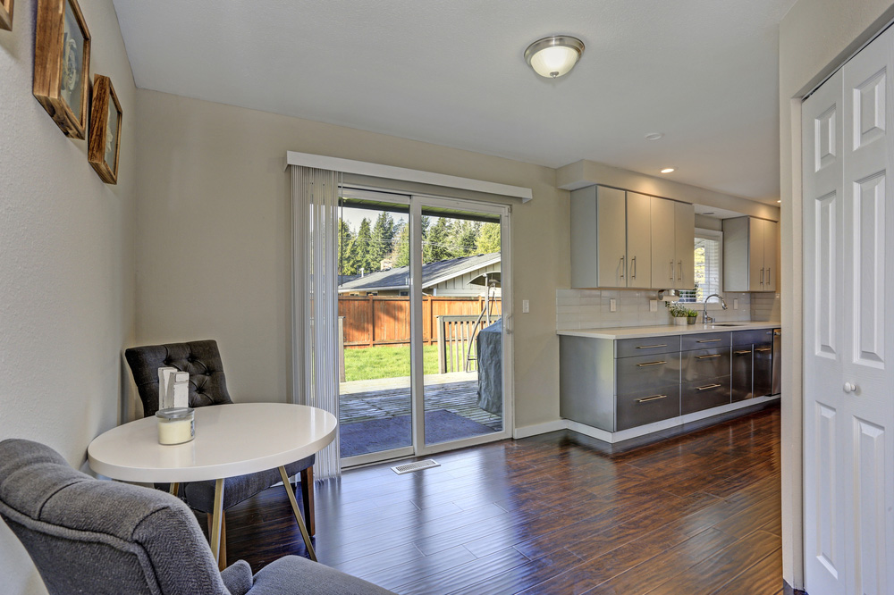 - Sliding Patio Doors — These are the most popular types of patio doors. They work in a way that’s similar to large sliding windows. They can also provide the most amount of natural light and air circulation. They can be made out of a variety of materials (including vinyl, aluminum, and wood). They also move along tracks with rollers, which allow them to be opened and closed more easily.